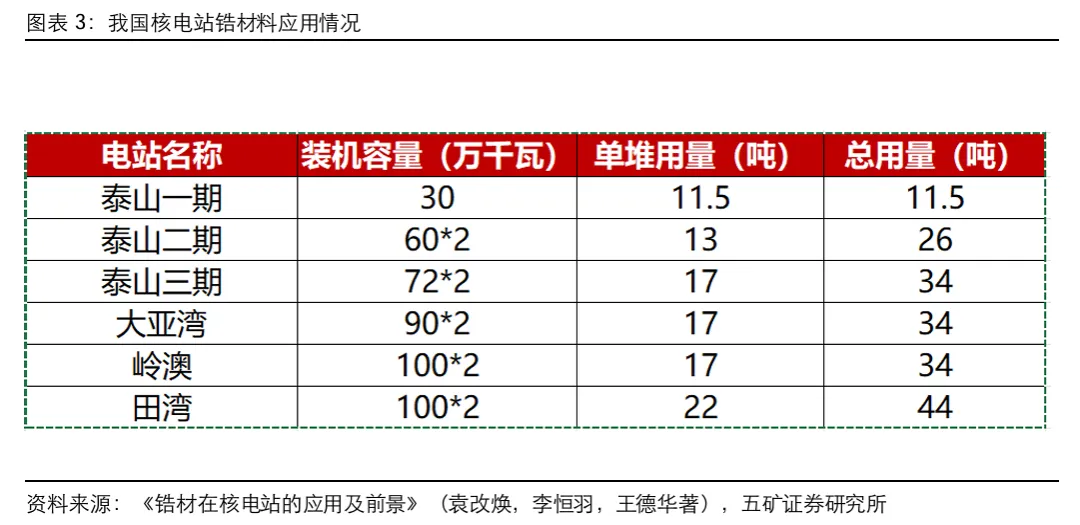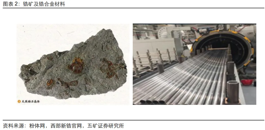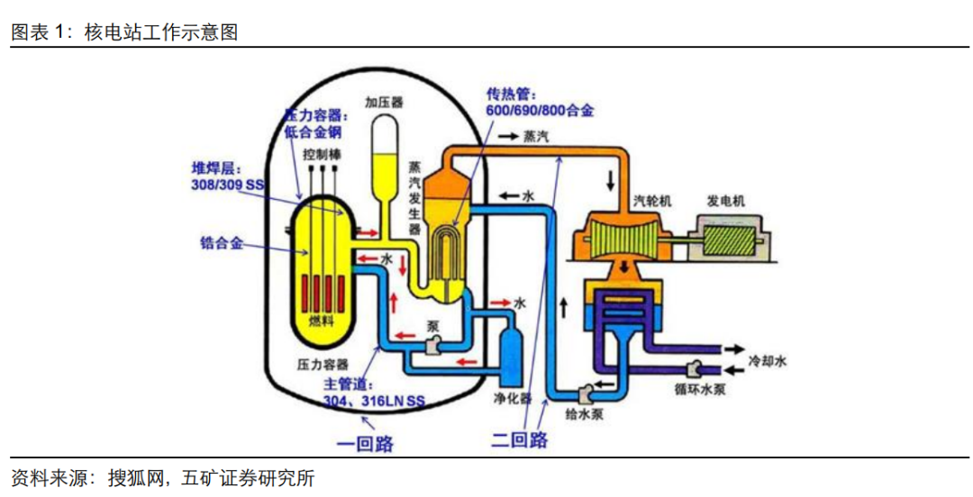 1、锆合金主要用于核电包壳管 包壳管是核反应堆主要保护屏障,锆合金是包壳管材料首选。核电站主要利用核反应堆中的核裂变反应,从而释放大量的热能,来推动蒸汽轮机发电,其中包壳管主要作用是保障核燃料不受氧化和腐蚀,同时能够承受放射性衰变带来的高温和高压,是反应堆主要保护屏障。由于包壳管材料要求极高,锆合金材料优点多,目前全球主要核电站反应堆包壳管以锆合金材料为主。